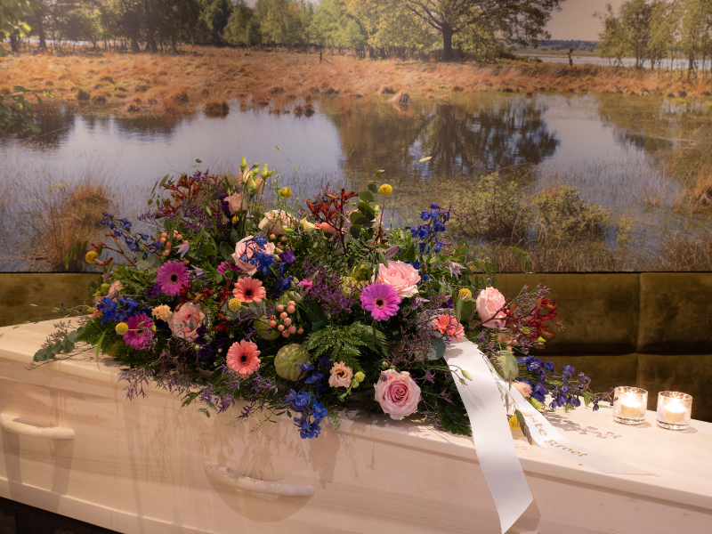 Rouwarrangement dat als bloemstuk op water is gestoken om bij een overledene te plaatsen op of bij de kist. Stuk is meestal een aantal dagen houdbaar.